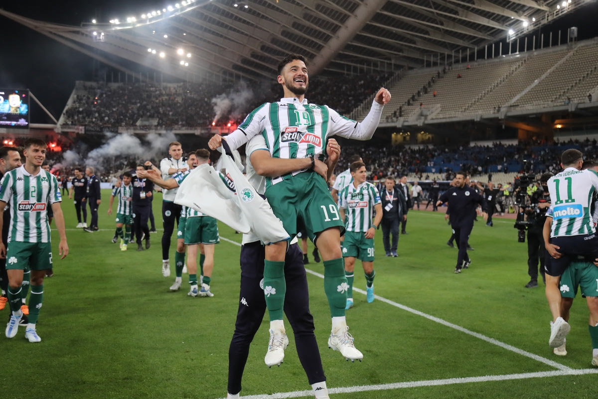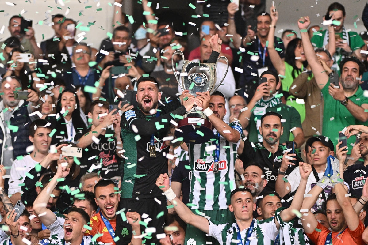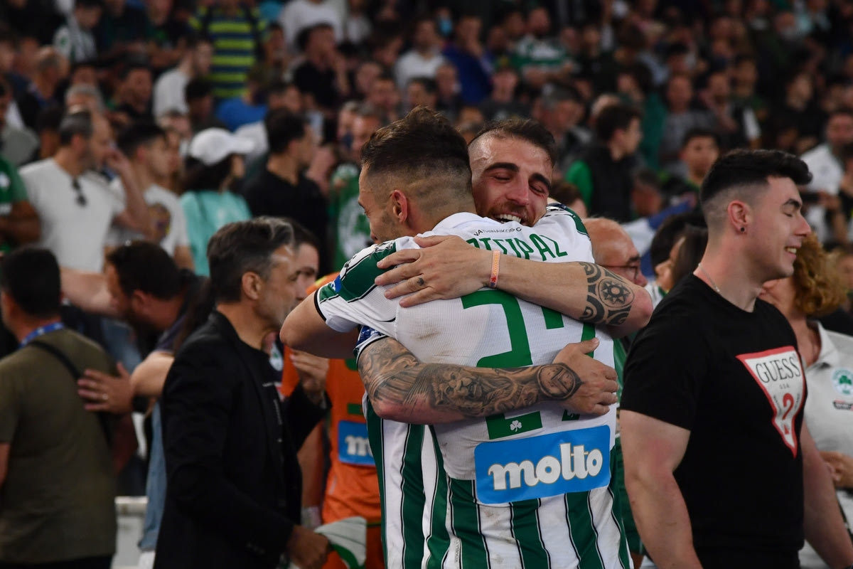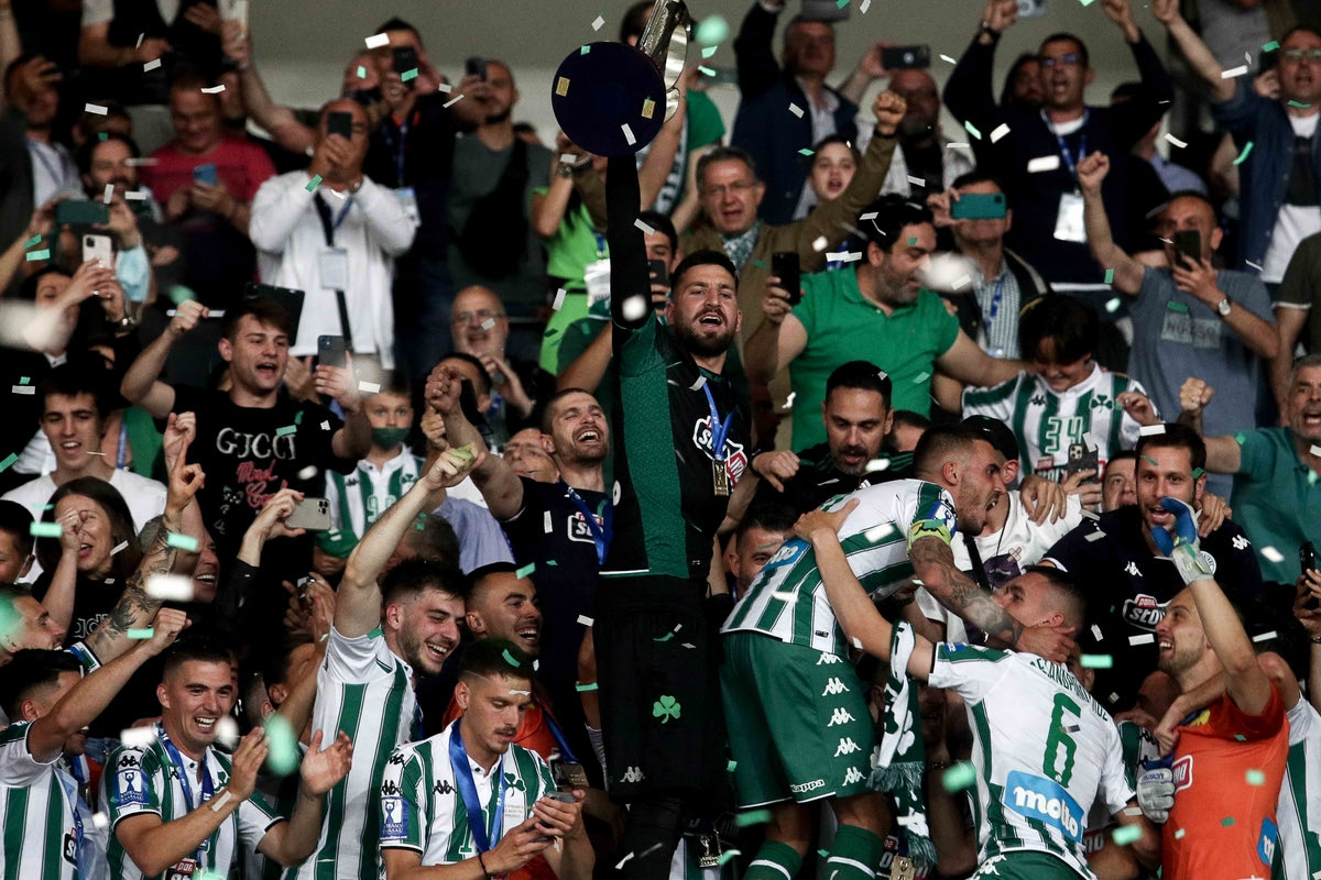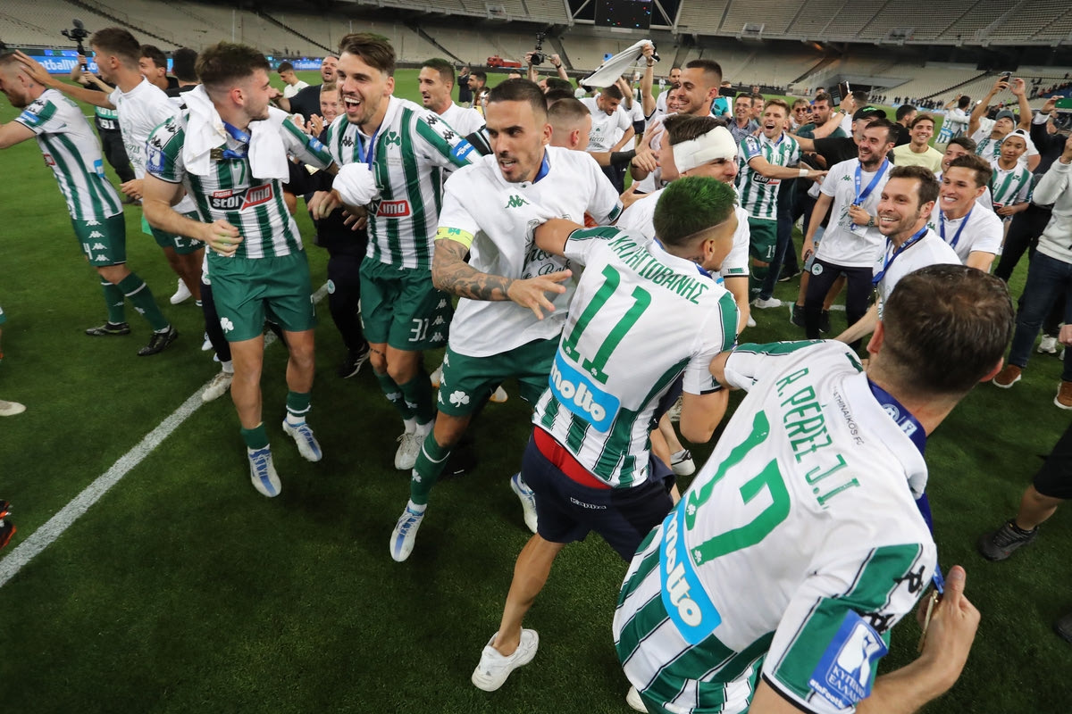 Οι πράσινοι πανηγύρισαν έξαλλα την κατάκτηση του τίτλου, έγιναν μία αγκαλιά με τον κόσμο, αλλά και ένα κουβάρι τη στιγμή που το τρόπαιο σηκώθηκε στον ουρανό του ΟΑΚΑ.