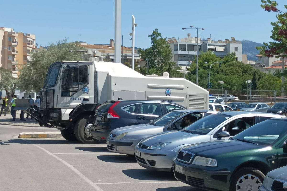 Αστυνομικές δυνάμεις υπάρχουν παντού, ακόμα και στα γήπεδα του τένις, ενώ από τις δέκα το πρωί έχει απαγορευτεί το πάρκινγκ σε όλο τον δρόμο του Ηλεκτρικού της Ειρήνης.