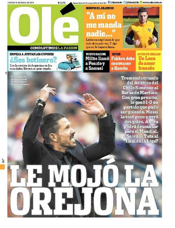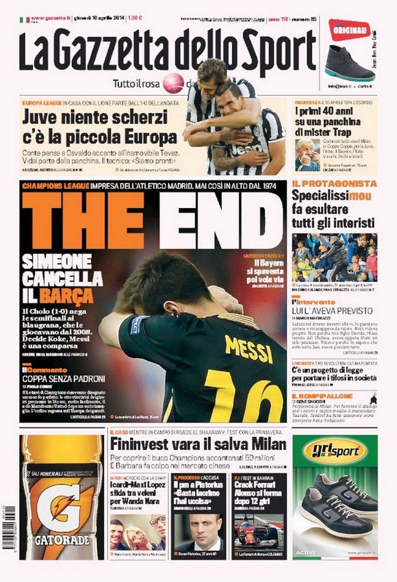 Η ιταλική “Gazzetta dello sport” προαναγγέλλει το τέλος της Μπάρτσα με έναν Μέσι σε ρόλο κομπάρσου, ενώ στην πατρίδα του Τσόλο Σιμεόνε η “Ole” αφιερώνει όλη την πρώτη της σελίδα στον Αργεντινό προπονητή.