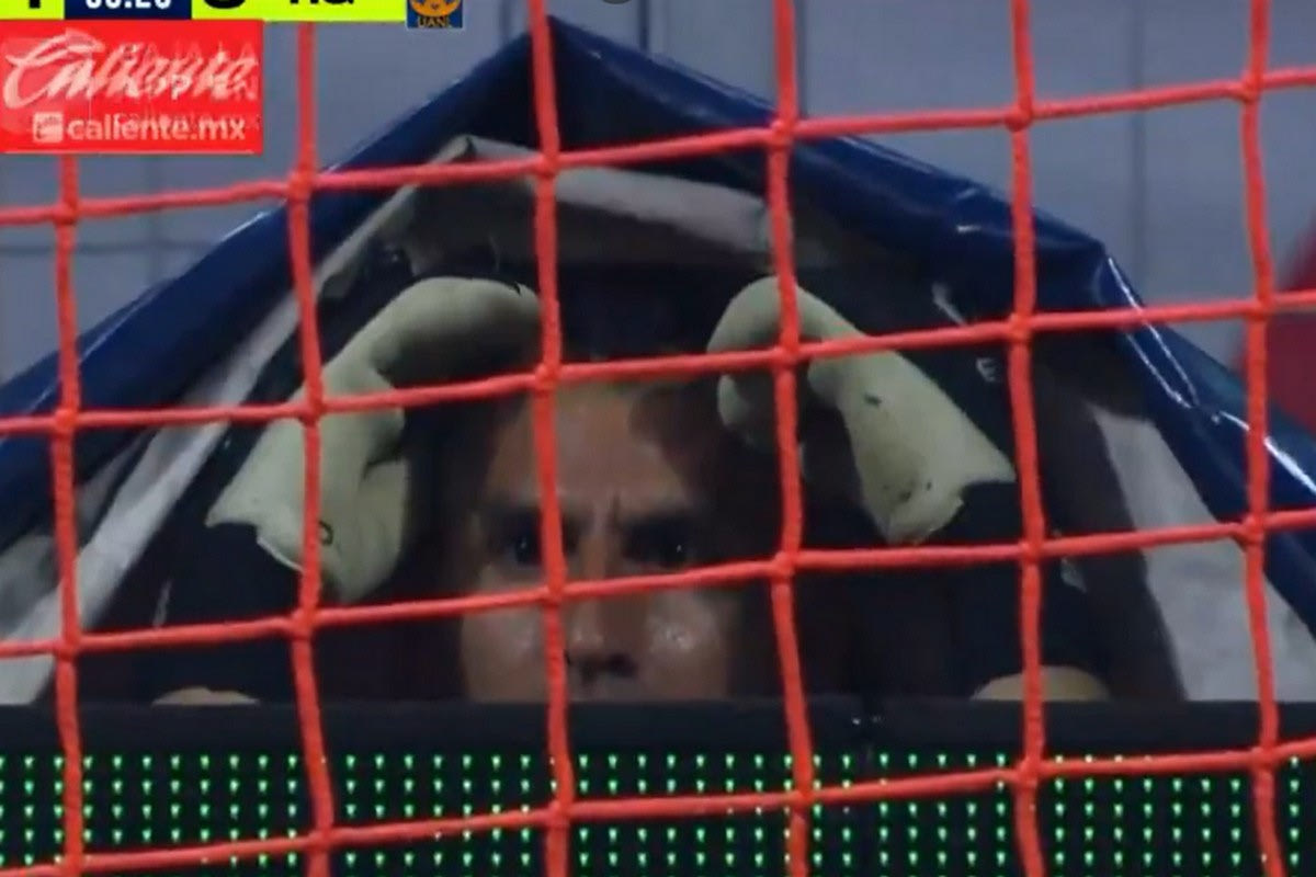 Απίθανος ο τερματοφύλακας της Τίγκρες, αποβλήθηκε από τον αγώνα και κρύφτηκε προκειμένου να μην φύγει από τον αγωνιστικό χώρο.