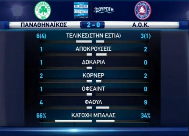Ο Παναθηναϊκός ήταν καλύτερος σε όλη τη διάρκεια της αναμέτρησης, είχε πάλι 15 τελικές με εννιά στην εστία, δυο δοκάρια και πολλές φάσεις για γκολ.