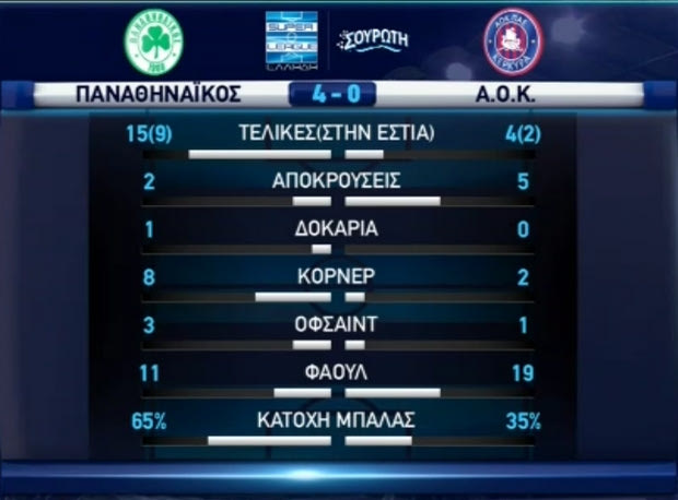 Η στατιστική εικόνα της αναμέτρησης στα πρώτα 45 λεπτά: