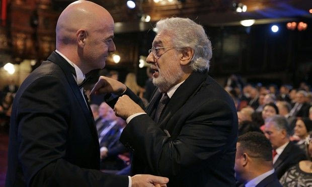 Ο πρόεδρος της FIFA, Τζιάνι Ινφαντίνο, και ο κορυφαίος τενόρος Πλάθιντο Ντομίνγκο
