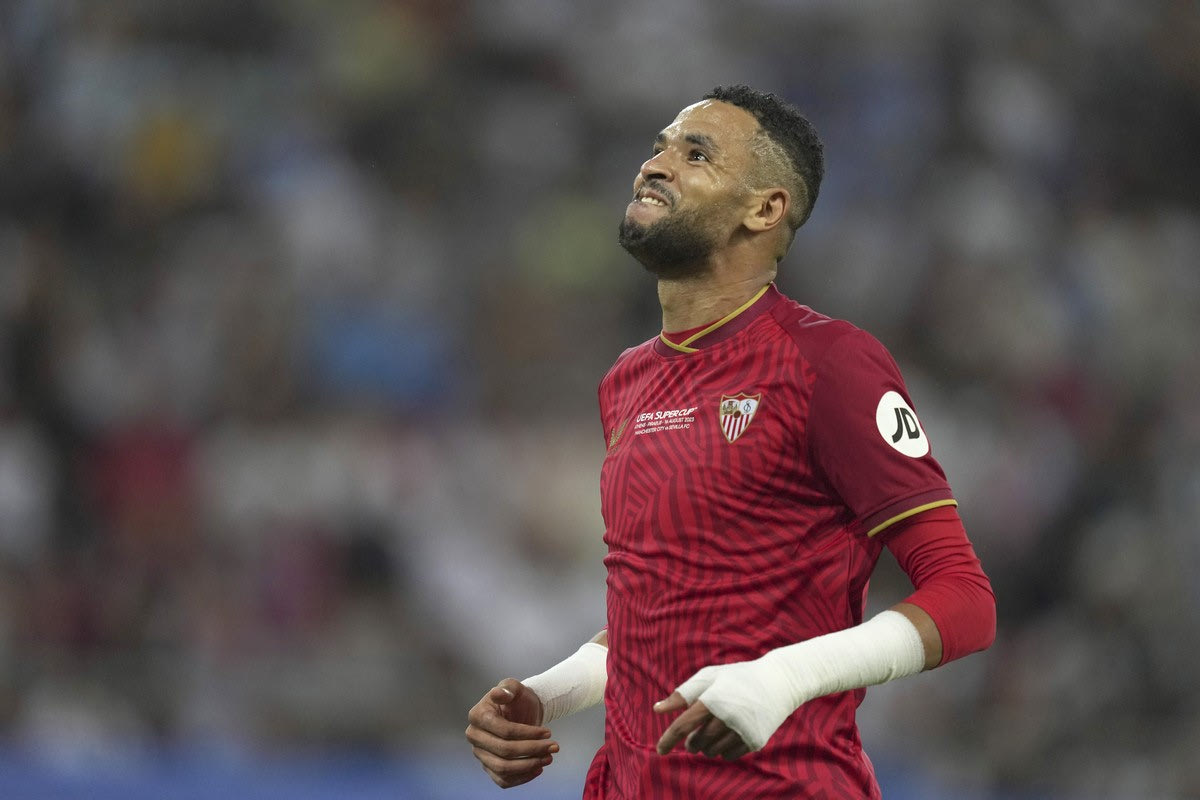 Ο Γιουσέφ εν Νεσιρί της Σεβίλλης σε στιγμιότυπο της αναμέτρησης με τη Μάντσεστερ Σίτι για το Super Cup Ευρώπης 2023 στο "Γεώργιος Καραϊσκάκης" | Τετάρτη 16 Αυγούστου 2023 © 2023/Petros Giannakouris/AP IMAGES