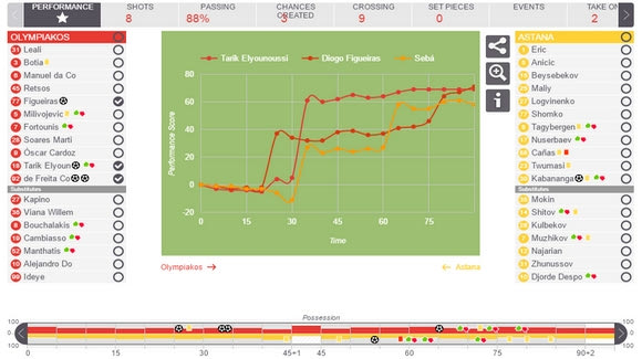 Και το τελικό 4-1, στέλνει τους Πειραιώτες στους 6 βαθμούς πριν επισκεφθούν το Καζακστάν στις 3 Νοεμβρίου. Στο προηγούμενο εντός έδρας παιχνίδι με τον ΑΠΟΕΛ για την ίδια διοργάνωση, ο Ολυμπιακός είχε κάνει 21 τελικές προσπάθειες. Και τρία δοκάρια. Χωρίς να σκοράρει, γνωρίζοντας την ήττα με σκορ 0-1. Σε αυτό με τους Καζάκους οι Πειραιώτες, έφτασαν ξανά στις 21 τελικές (16 open play, 5 στημένες φάσεις) στο παιχνίδι. Αυτή τη φορά όμως πέτυχαν 4 γκολ, τα τρία στο πρώτο μέρος.