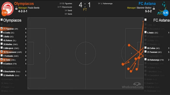 Σίγουρα η Αστάνα δεν αποδείχθηκε η αντίπαλος που θα έβαζε ζόρια στον Ολυμπιακό. Δεν ήταν το παιχνίδι για οριστικά συμπεράσματα, όσον αφορά την επιθετική λειτουργία των άκρων για τους Πειραιώτες. Από την άλλη δεν μπορεί να περάσει στο ντούκου η αποτελεσματικότητα των Σεμπά – Ελιουνούσι αλλά και Φιγκέιρας, που βοήθησαν τα μέγιστα ώστε να απλουστευθεί η κατάσταση για την ομάδα τους στον αγωνιστικό χώρο. Ίσως το στοίχημα του Πάουλο Μπέντο είναι να διατηρήσει σε όσο το δυνατόν υψηλότερα επίπεδα την προσφορά των ακραίων του στο δημιουργικό/εκτελεστικό τομέα των αγώνων.