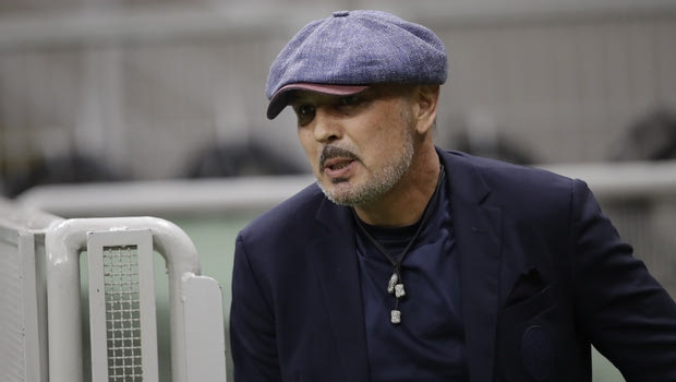 Bologna's head coach Sinisa Mihajlovic pauses prior to a Serie A soccer match between AC Milan and Bologna, at the San Siro stadium in Milan, Italy, Saturday, July 18, 2020. (AP Photo/Luca Bruno)
