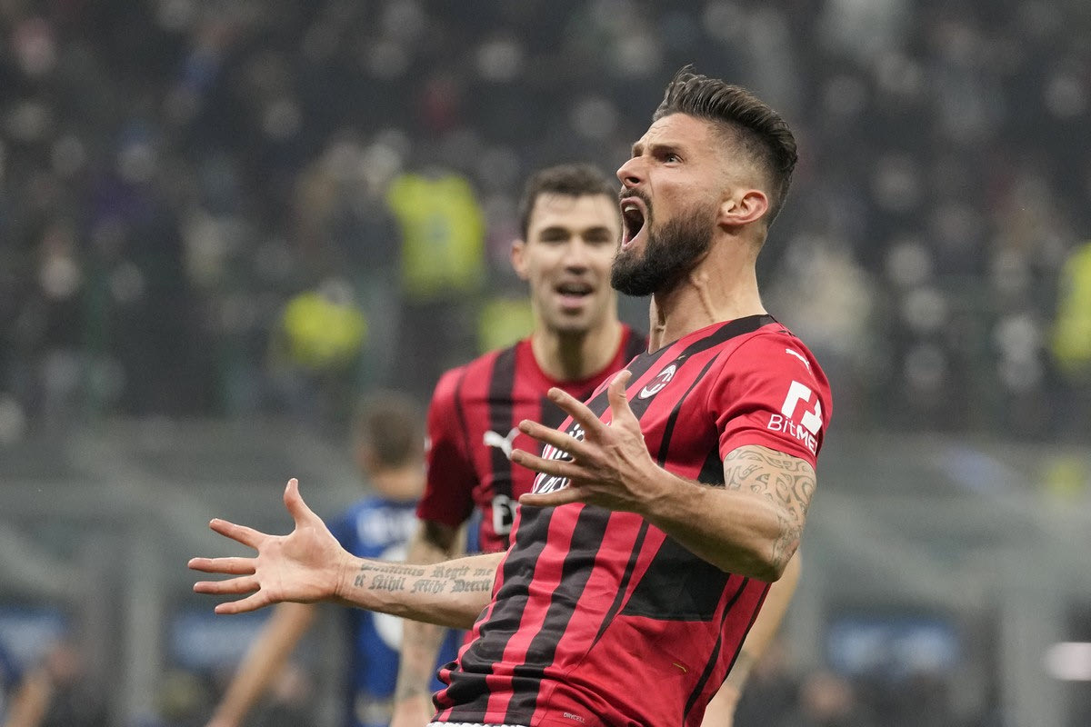Ο Ολιβιέ Ζιρού πανηγυρίζει γκολ της Μίλαν κόντρα στην Ίντερ σε ντέρμπι των δύο ομάδων για την Serie A | 5 Φεβρουαρίου 2022