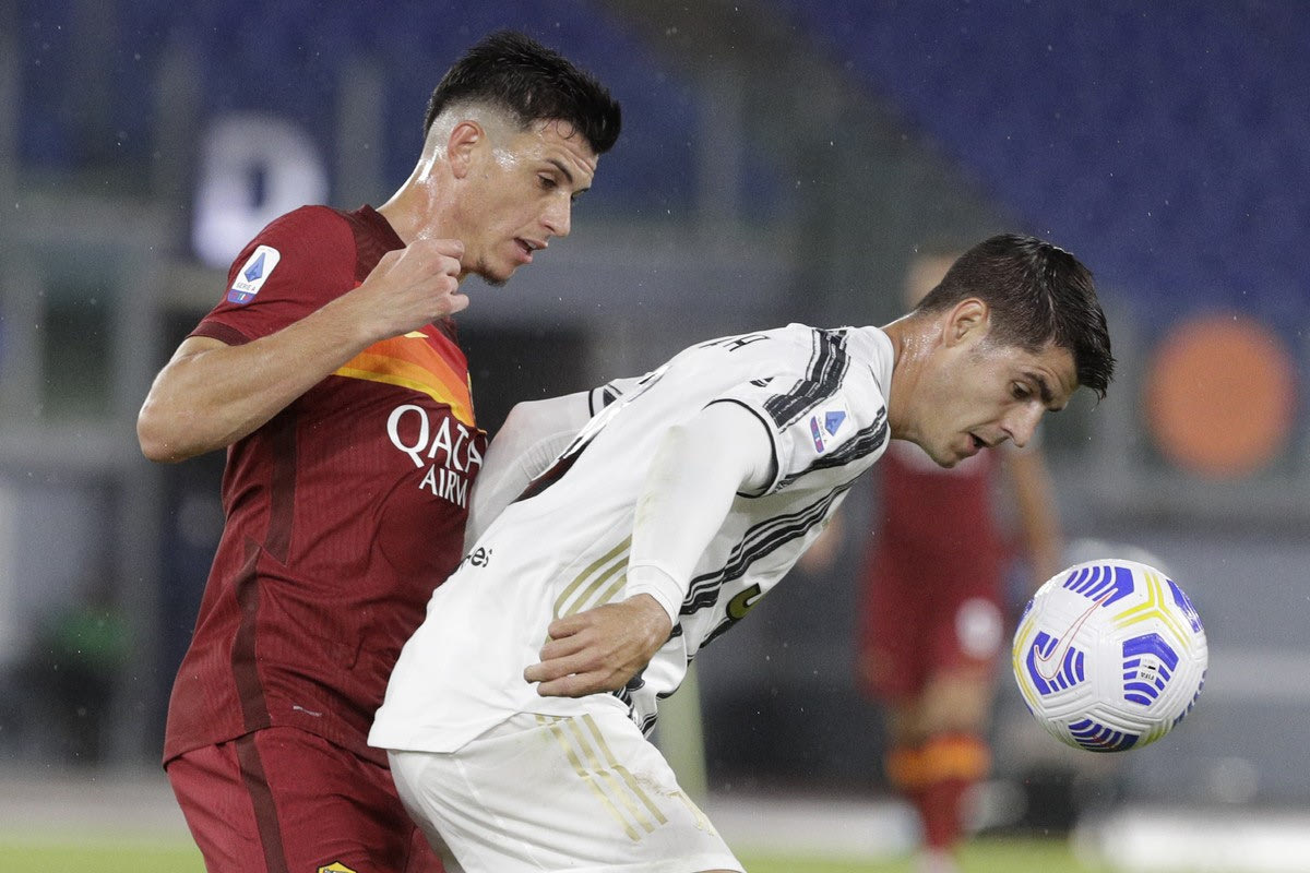 Στιγμιότυπο από την αναμέτρηση ανάμεσα στη Ρόμα και τη Γιουβέντους με τους Άλβαρο Μοράτα και Ιμπάνεζ