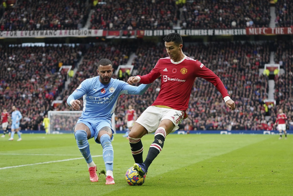 Κάιλ Γουόκερ και Κριστιάνο Ρονάλντο μάχονται για την μπάλα στο Μάντσεστερ Γιουνάιτεντ - Μάντσεστερ Σίτι
