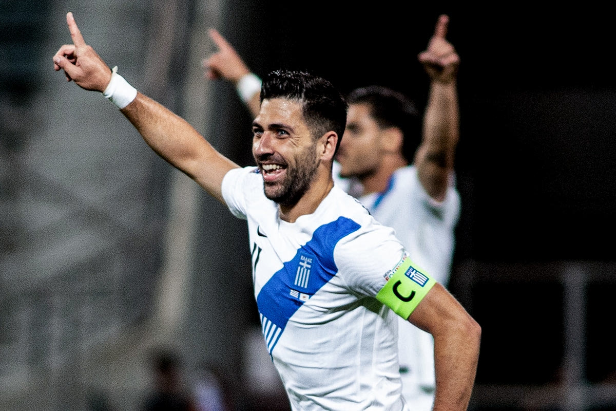 Ο Τάσος Μπακασέτας πανηγυρίζει για το 1-0 της Εθνικής απέναντι στην Κύπρο