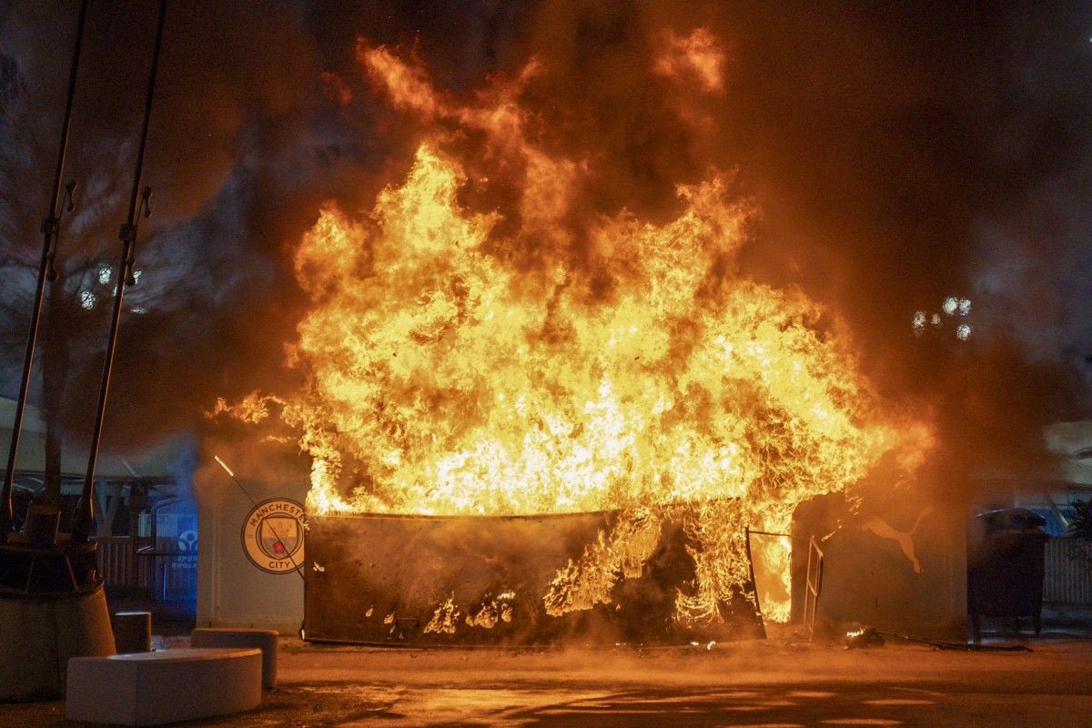 Περίπου 1,5 ώρα πριν την έναρξη της αναμέτρησης ανάμεσα στη Μάντσεστερ Σίτι και τη Μπριζ για την αυλαία της League Phase του Champions League, ένας πάγκος εμπορευμάτων των Πολιτών τυλίχθηκε στις φλόγες λίγα μέτρα μακριά από το Έτιχαντ.