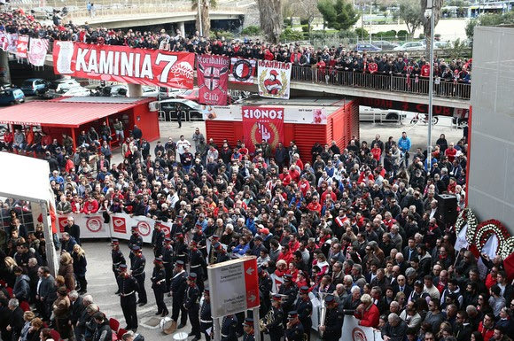 Πραγματοποιήθηκε το μεσημέρι του Σαββάτου (7/2) στο Γεώργιος Καραϊσκάκης το ετήσιο μνημόσυνο για τα αδικοχαμένα θύματα της τραγωδίας της Θύρας 7. Το παρών έδωσε σύσσωμη η οικογένεια του Ολυμπιακού όπως και φίλαθλοι της ομάδας που ήθελαν να τιμήσουν τη μνήμη των παιδιών που χάθηκαν στις 8/2/1981.