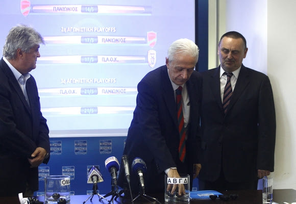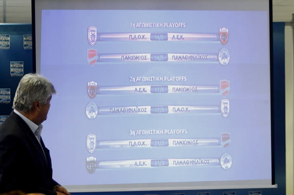 Πραγματοποιήθηκε η κλήρωση για τα play offs που θα ξεκινήσουν την Κυριακή 14/5 και θα ολοκληρωθούν στις 31/5. Ο ΠΑΟΚ θα υποδεχθεί την ΑΕΚ την πρώτη αγωνιστική και ο Πανιώνιος τον Παναθηναϊκό.