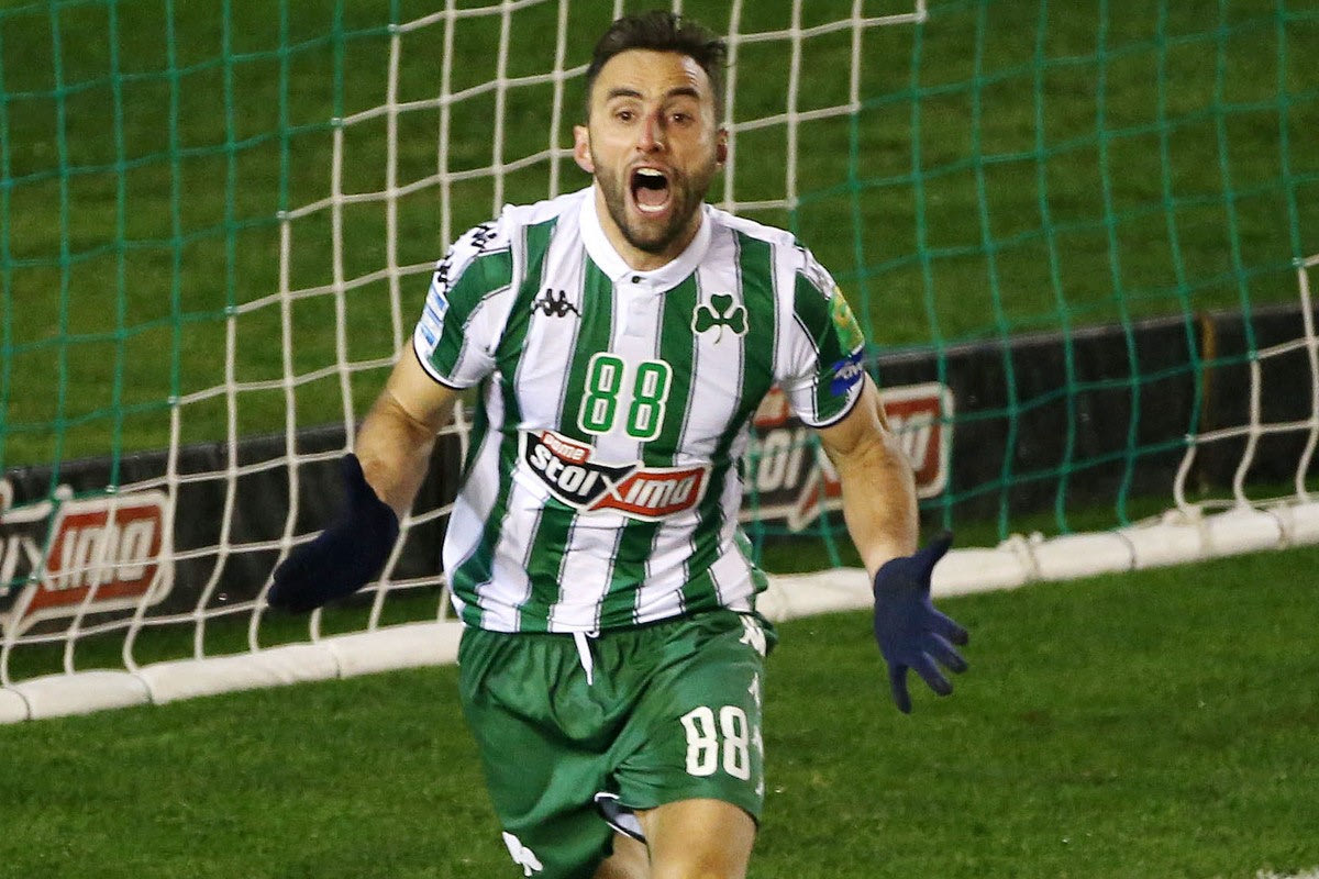Ο Μαουρίσιο πανηγυρίζει γκολ με τη φανέλα του Παναθηναϊκού τη σεζόν 2021-22