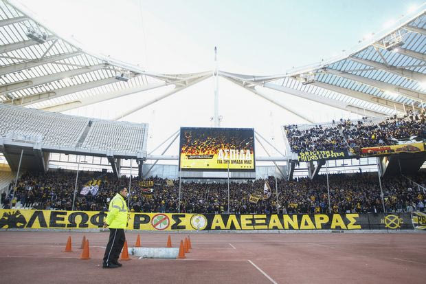 H AEK υποδέχθηκε τον Παναθηναϊκό στο ΟΑΚΑ το απόγευμα της Κυριακής (1/4), στο ντέρμπι της 26ης αγωνιστικής της Super League. Περίπου 30.000 φίλοι της Ένωσης έδωσαν το “παρών” στο Ολυμπιακό Στάδιο προκειμένου να στηρίξουν την ομάδα τους που είναι “αγκαλιά” με το πρωτάθλημα.