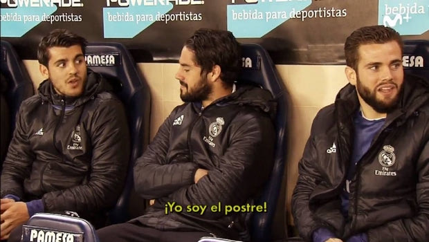 Όπως έκαναν αμφότεροι, όταν πήραν τις θέσεις τους, πριν ξεκινήσει το ματς στο “Estadio de la Cerámica”. Ο Ίσκο απάντησε σε οπαδό που βρισκόταν πάνω από τον πάγκο (σ.σ άγνωστο τι του είπε εκείνος στην αρχή) λέγοντας πως είναι το “δεύτερο πιάτο”. Αμέσως, ο Άλβαρο Μοράτα απάντησε κι αυτός με όρους εστίασης στον συμπαίκτη του: “Κι εγώ είμαι το επιδόρπιο”.