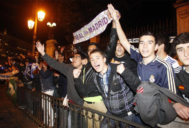 Η Ρεάλ επιστρέφει στα πρωταθλήματα με τον πιο εμφατικό τρόπο: “Διπλό” στην έδρα της Μπαρτσελόνα. Όπως ήταν φυσικό αρκετοί φίλαθλοι της “βασίλισσας” βγήκαν στους δρόμους της Μαδρίτης για να πανηγυρίσουν το 2-1 μέσα στο “Καμπ Νόου”.