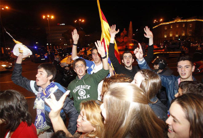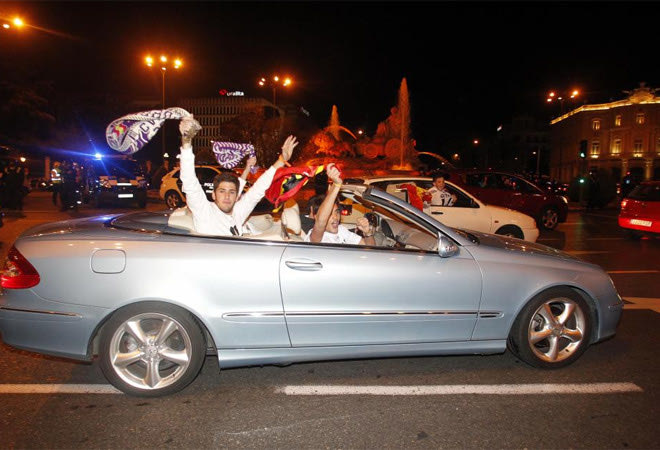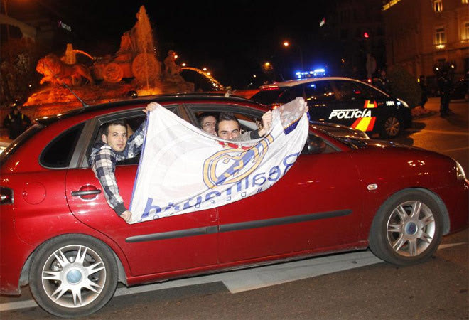 Η Ρεάλ επιστρέφει στα πρωταθλήματα με τον πιο εμφατικό τρόπο: “Διπλό” στην έδρα της Μπαρτσελόνα. Όπως ήταν φυσικό αρκετοί φίλαθλοι της “βασίλισσας” βγήκαν στους δρόμους της Μαδρίτης για να πανηγυρίσουν το 2-1 μέσα στο “Καμπ Νόου”.