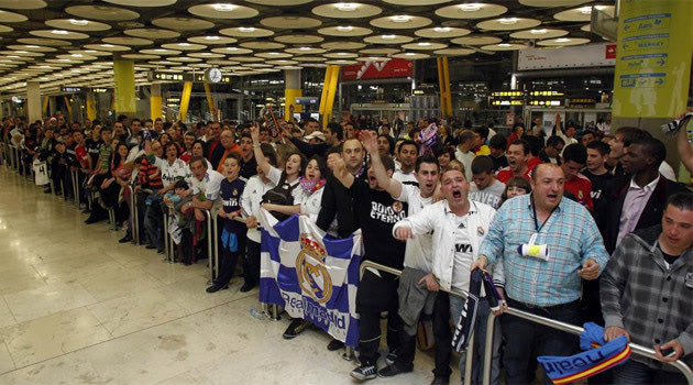 Κοσμοσυρροή και στο αεροδρόμιο Barajas της Μαδρίτης για την υποδοχή των εν δυνάμει νέων πρωταθλητών Ισπανίας.