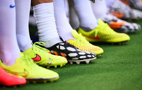 FORTALEZA, BRAZIL - JUNE 24: Player's boots are seen during the 2014 FIFA World Cup Brazil Group C match between Greece and the Ivory Coast at Castelao on June 24, 2014 in Fortaleza, Brazil. (Photo by Laurence Griffiths/Getty Images)