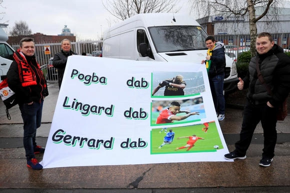 Το πανό περιλαμβάνει τον Πολ Πογκμπά να κάνει dab (όταν ήταν παίκτης της Γιουβέντους ακόμα), τον Τζέσε Λίνγκαρντ να κάνει dab και τον εμβληματικό αρχηγό της Λίβερπουλ να κάνει άθελά του dab, την ώρα που γλιστρούσε στον αγώνα που για πολλούς έκρινε τον τίτλο της σεζόν 2013-2014, με τους “κόκκκινους” να χάνουν εντός έδρας με 2-0, να πέφτουν από την κορυφή και εν τέλει τη Μάντσεστερ Σίτι να στέφεται πρωταθλήτρια.