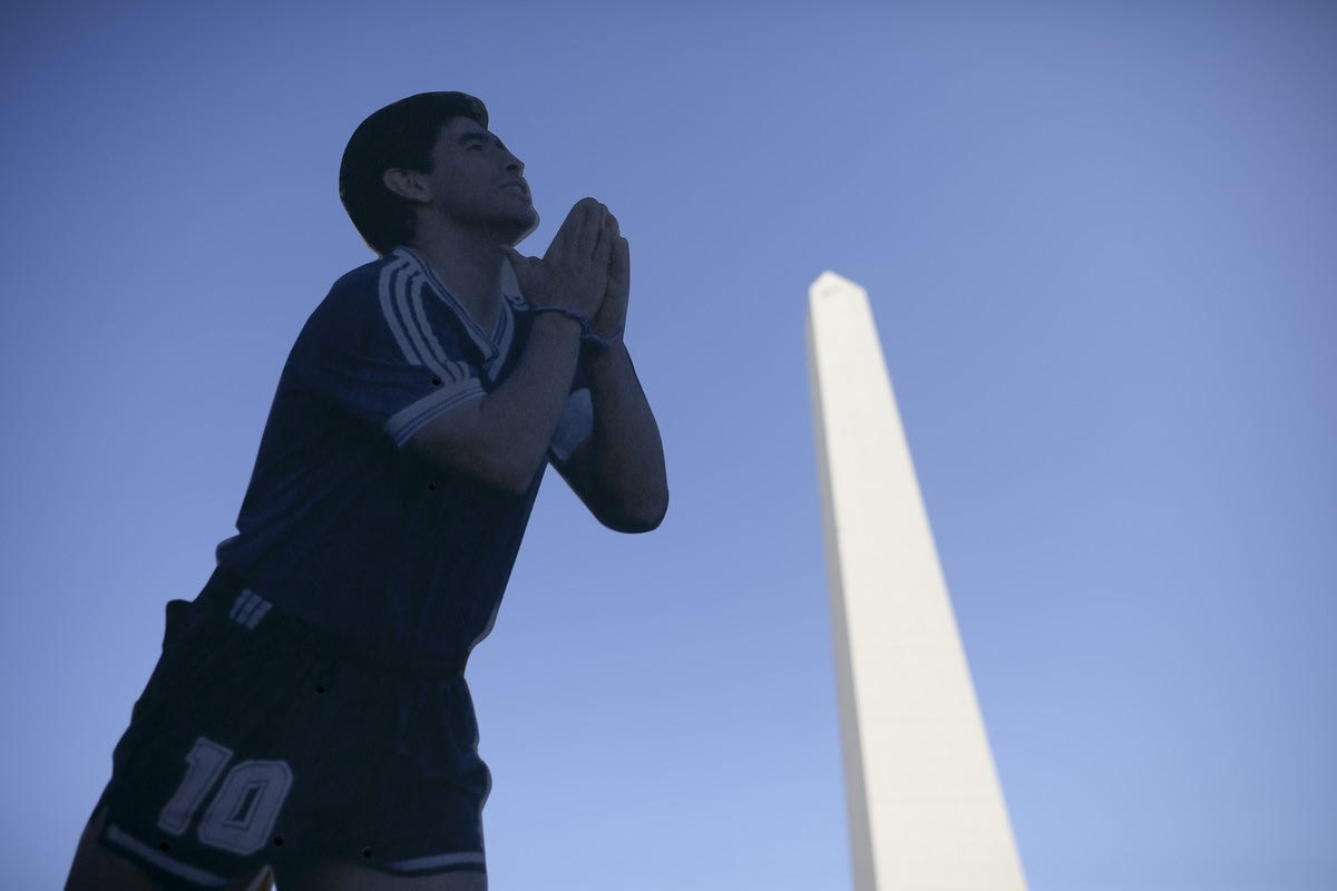 Οπαδοί κρατούν ομοίωμα του Ντιέγκο Μαραντόνα πορεία προς τιμήν του στο Μπουένος Άιρες