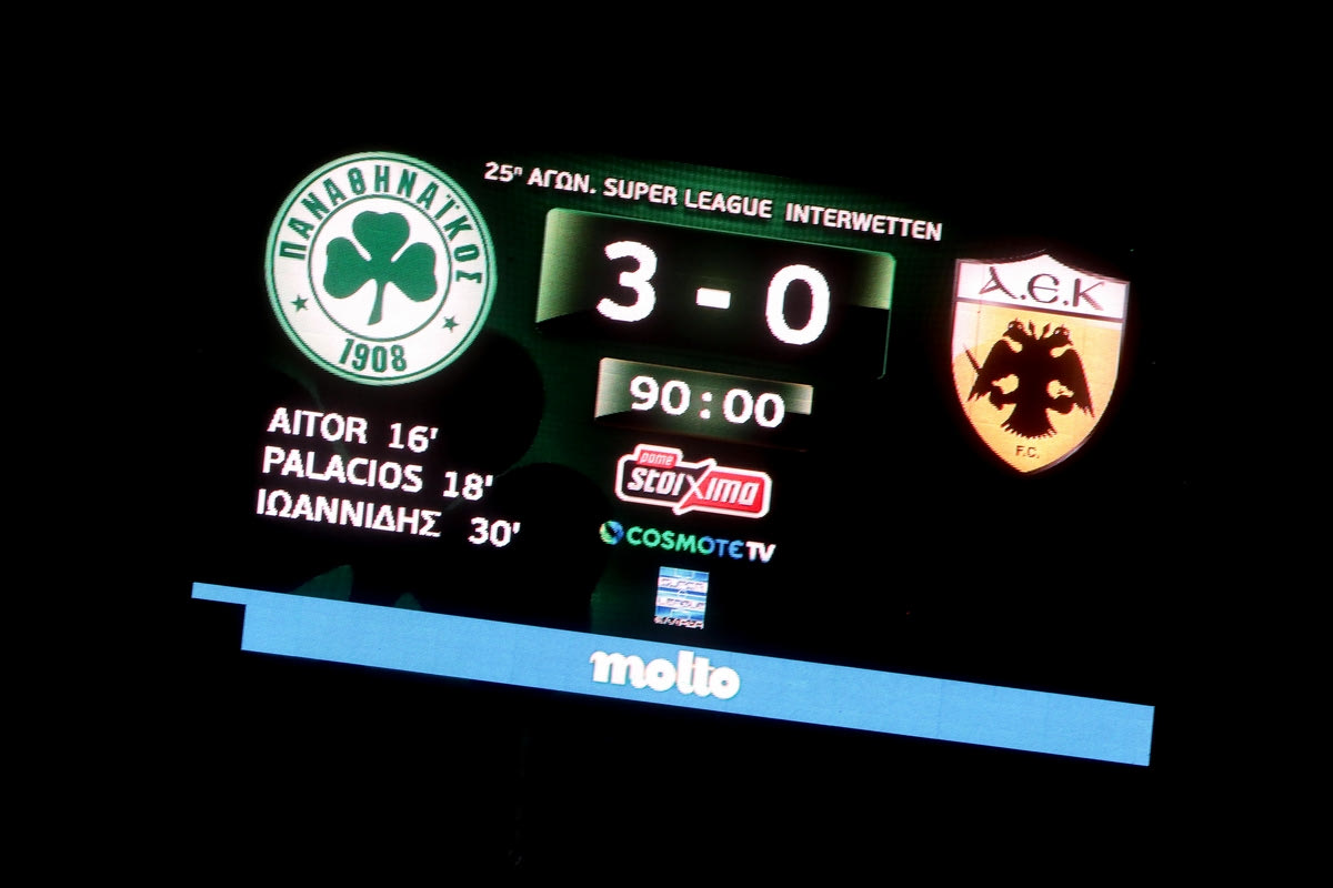 Ο Παναθηναϊκός ήταν ο θριαμβευτής στο αθηναϊκό ντέρμπι με την ΑΕΚ, καθώς πριν συμπληρωθεί μισή ώρα το σκορ ήταν ήδη 3-0 και έμελλε να μείνει ως το φινάλε.
