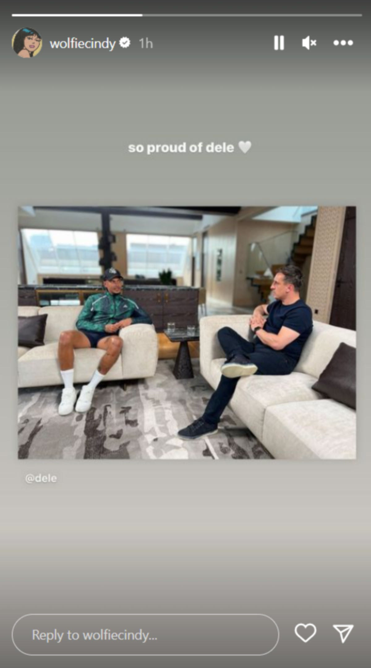 “Περήφανη για τον Ντέλε” έγραψε στο στόρι που δημοσίευση μία φωτογραφία του 24χρονου μέσου.