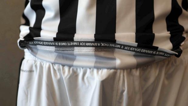Η νέα εμφάνιση που δημιούργησε η Macron για τον ΠΑΟΚ διακρίνεται για την κομψή της αισθητική. Το πρώτο που βλέπει κανείς είναι η διαφορά στις κλασική ασπρόμαυρη. Οι ρίγες είναι λεπτές, δίνοντας μια αυθεντική ρετρό αίσθηση που δένει με τον μοντέρνο γιακά με τον σύγχρονο σχεδιασμό.