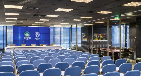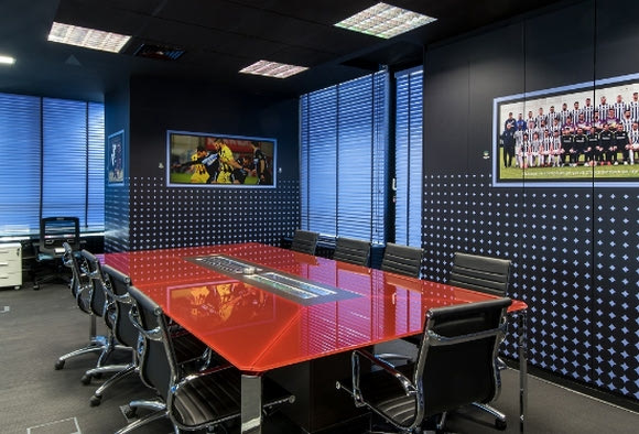 Πρόκειται για ένα νέο υπερσύγχρονο χώρο τριακοσίων τετραγωνικών μέτρων που χρειάστηκαν 10 μήνες για την ολοκλήρωσή του, ενώ για το σχεδιασμό του, αρχιτέκτονες και γραφίστες του έργου επισκέφθηκαν τα γραφεία μεγάλων ομάδων στο εξωτερικό όπως της Μίλαν και της Ίντερ.