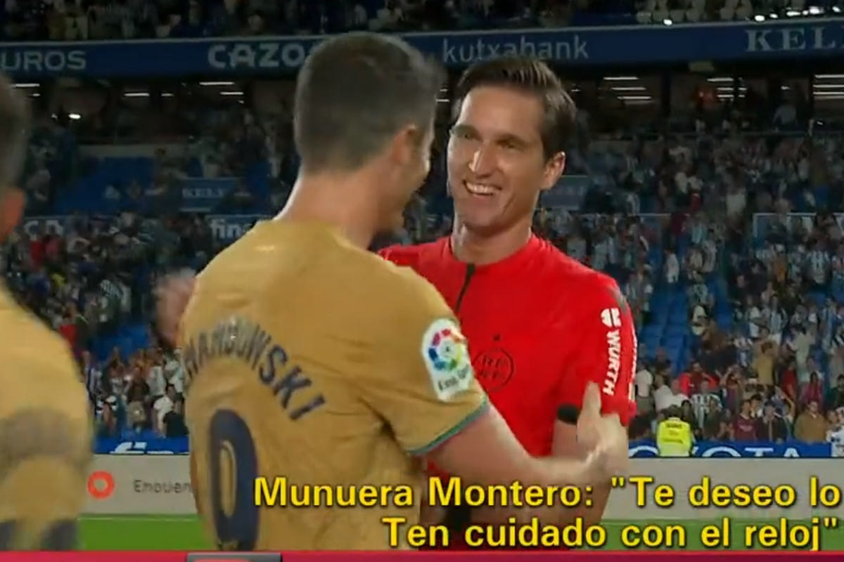 Ο διαιτητής, Μουνουέρα Μοντέρο, συνεχάρη τον Ρόμπερτ Λεβαντόβσκι για τη νίκη της Μπαρτσελόνα επί της Ρεάλ Σοσιεδάδ και στη συνέχεια αστειεύτηκε για την κλοπή του πανάκριβου ρολογιού του, συστήνοντάς του να είναι πιο προσεκτικός.