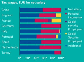 Στη Γαλλία και στην Πορτογαλία, η καθαρή αμοιβή του παίκτη είναι ακόμα μικρότερη, ενώ οι ασφαλιστικές εισφορές του εργοδότη μεγαλύτερες από την Αγγλία. Στη Γερμανία, στην Ισπανία και στην Ιταλία οι καθαρές αποδοχές του ποδοσφαιριστή είναι περίπου το 50% της αξίας του συμβολαίου.