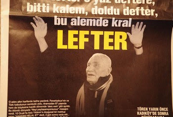 Είχε το παρατσούκλι Ordinaryüs, δηλαδή καθηγητής, διότι είχε άνεση στο σκοράρισμα. Το όνομά του είναι θρύλος μεταξύ των οπαδών της Φενερμπαχτσέ, οι οποίοι ακόμα τραγουδούν το σύνθημα: “Ver Lefter’e, Yazsin Deftere”, που σημαίνει “Δώσε στον Λευτέρη, θα γράψει στο τεφτέρι”.