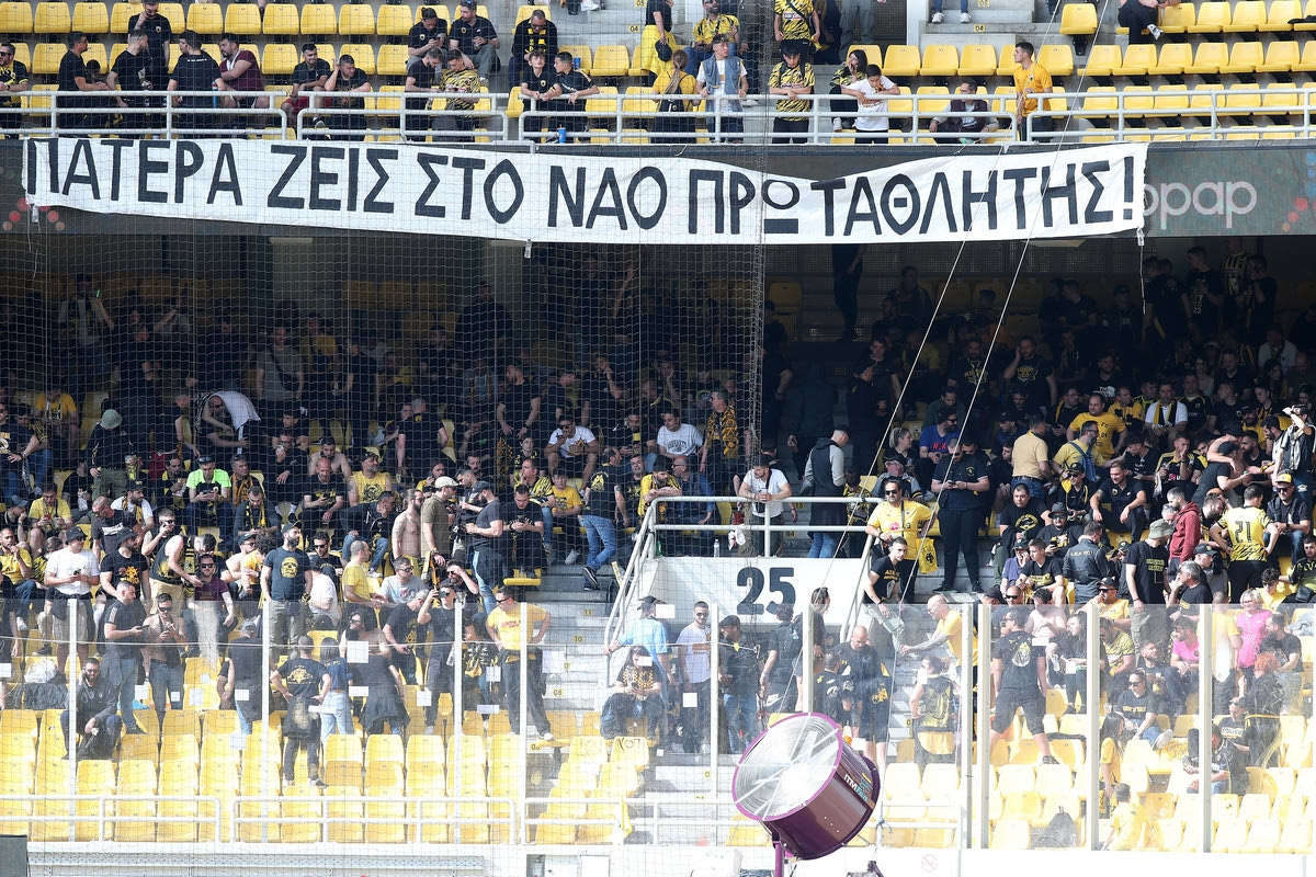Ένα συγκινητικό πανό σηκώθηκε στις εξέδρες της OPAP Arena για την αναμέτρηση της ΑΕΚ με τον Βόλο, το οποίο έγραφε "πατέρα ζεις στο ναό πρωταθλητής".