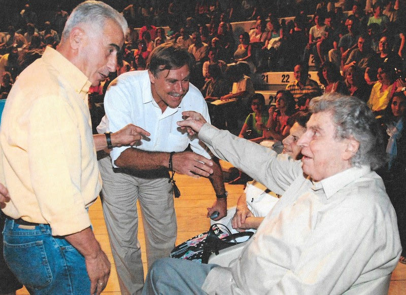 Στις 18 Δεκεμβρίου του 2003 ο Μίκης Θεοδωράκης υποδέχεται στο ξενοδοχείο “Χίλτον” μια ξεχωριστή παρέα από ποδοσφαιριστές που έγραψαν την ιστορία του αθλήματος στην Ελλάδα. “Αν μου έλεγαν ότι σήμερα θα έχω ένα γεύμα με τον Μπετόβεν, τον Σούμαν, τον Βάγκνερ, δεν θα χαιρόμουν τόσο πολύ, όσο που βρίσκομαι μαζί σας” λέει στην ομήγυρη ο μεγάλος συνθέτης.