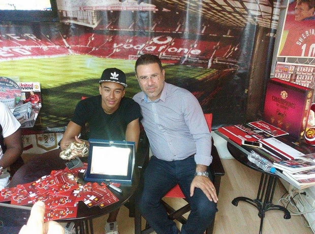 Ο Τζέσι Λϊνγκαρντ με τον γραμματέα της Πανελλήνιας Λέσχης Φίλων Μάντσεσστερ Γιουνάιτεντ, Σταύρο Μακρή