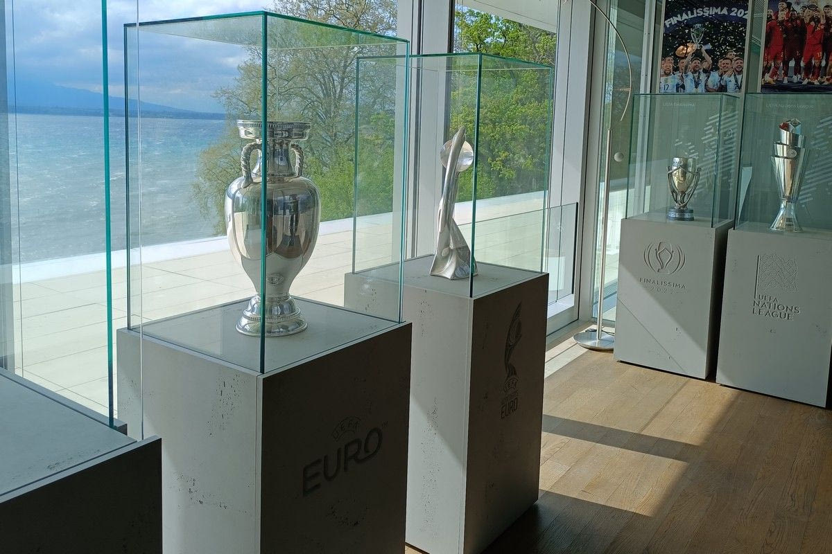 Η κούπα του ευρωπαϊκού πρωταθλήματος κοιτάζει προς την λίμνη της Γενεύης και κάνει… παρέα με τα άλλα τρόπαια της UEFA. Εκεί βρίσκεται το Super Cup, η κούπα του Nations League, του Finalissima και άλλα τρόπαια “Κ” διοργανώσεων.