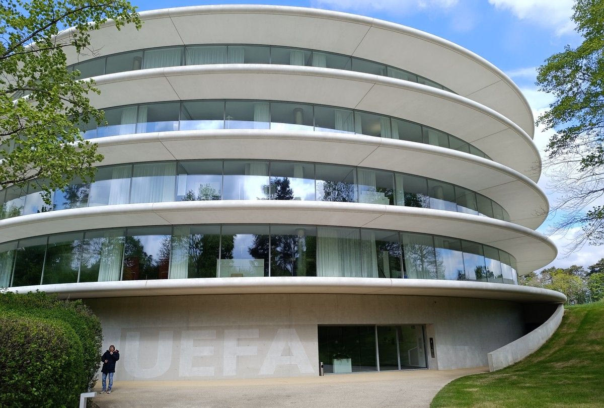Tο κτιριακό κόμπλεξ της UEFA είναι πραγματικά εκπληκτικό. Στο κεντρικό κτίριο η θέα προς την λίμνη της Γενεύης είναι πανέμορφη. Ένα τούνελ οδηγεί σε ακόμη δύο κτίρια, τα οποία στεγάζουν άλλα τμήματα της ευρωπαϊκής ποδοσφαιρικής Ομοσπονδίας.
