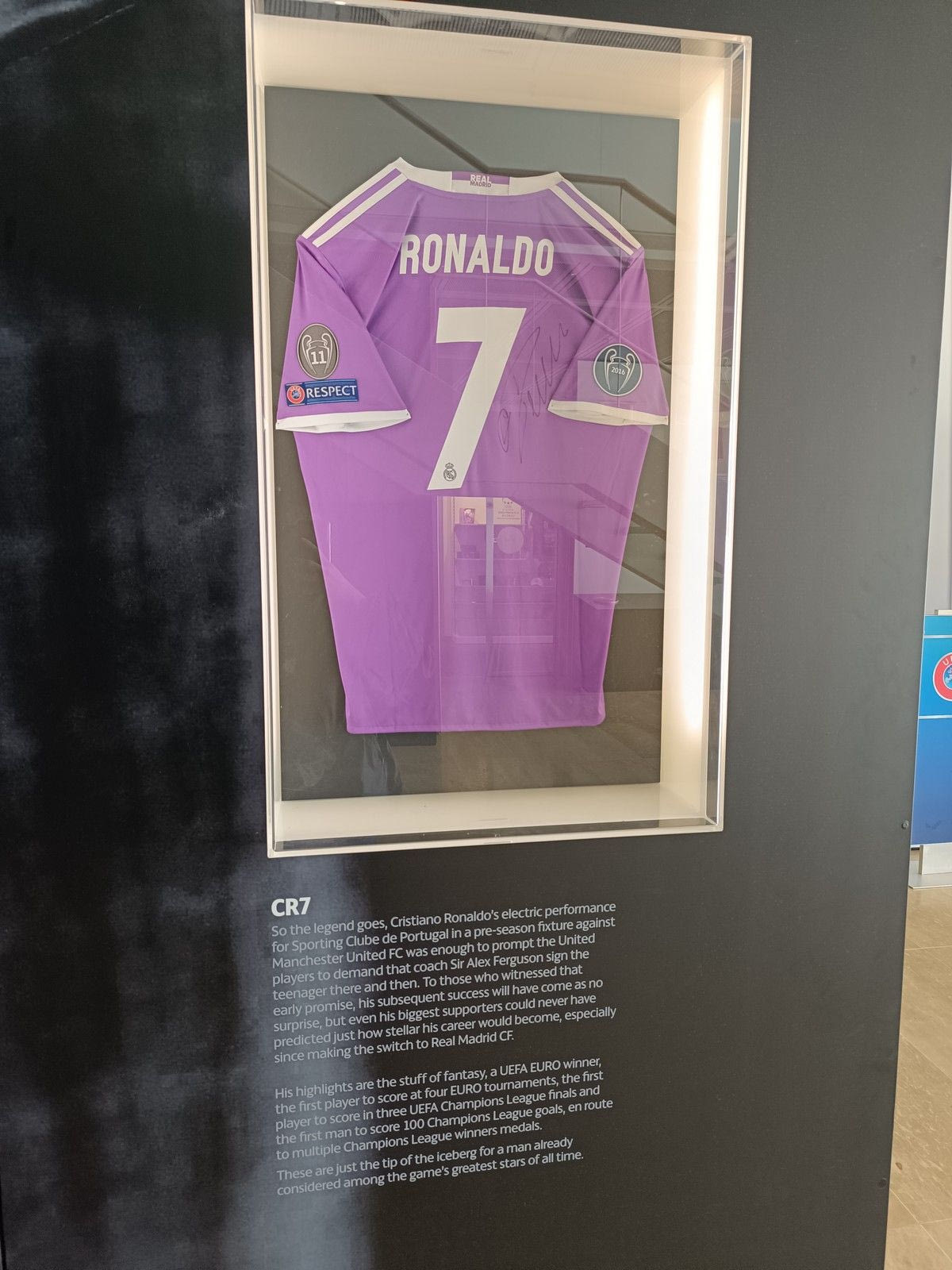 Παρακάτω, η φανέλα της Ρεάλ Μαδρίτης με το όνομα και την υπογραφή του Κριστιάνο Ρονάλντο, ένας φόρος τιμής στον CR7.