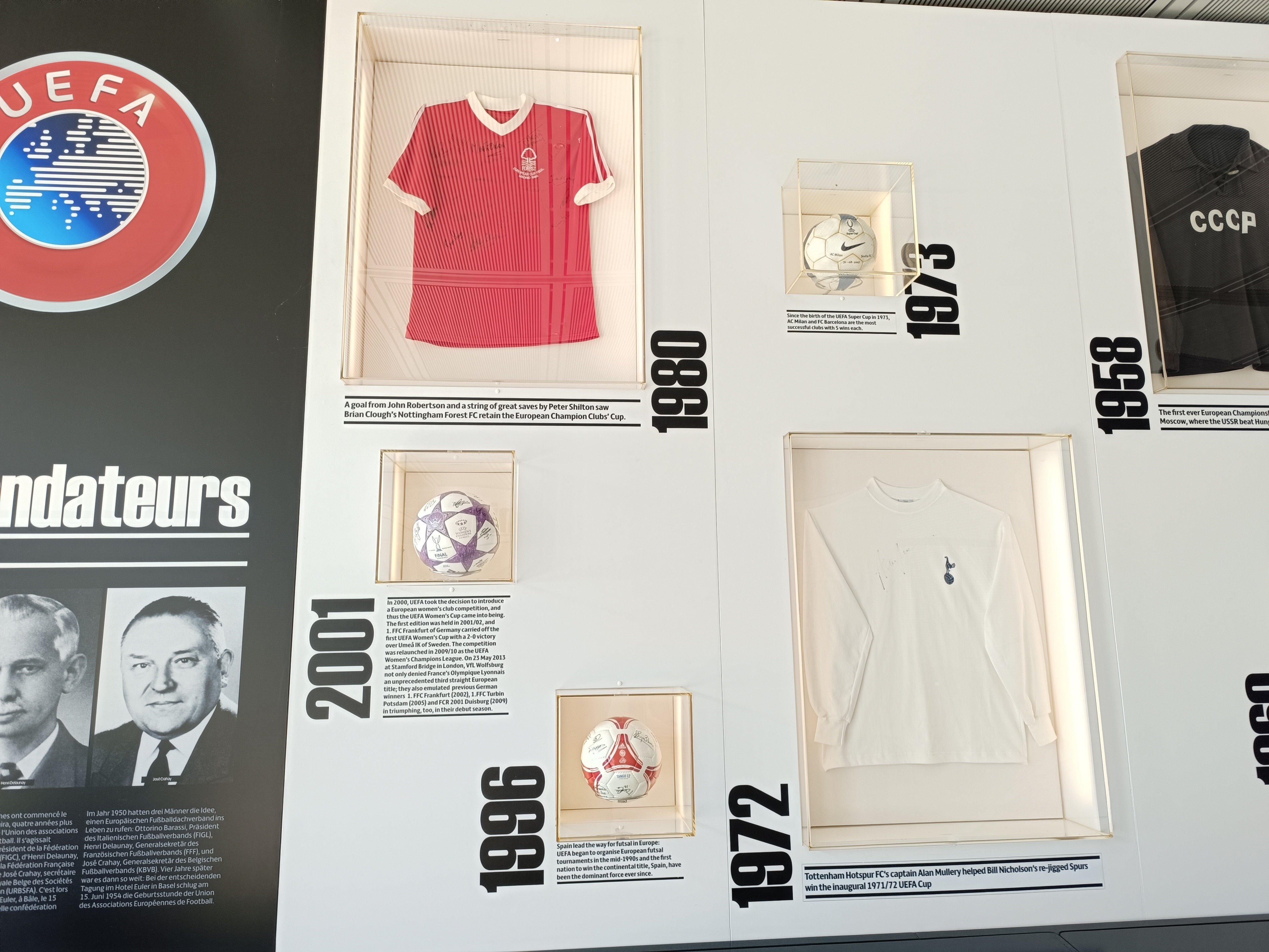 Η φανέλα της Νότιγχαμ από το Κύπελλο πρωταθλητριών του 1980, η πρώτη μπάλα του Champions League γυναικών το 2001, η φανέλα της Τότεναμ που είχε κατακτήσει το πρώτο Kύπελλο UEFA το 1972.