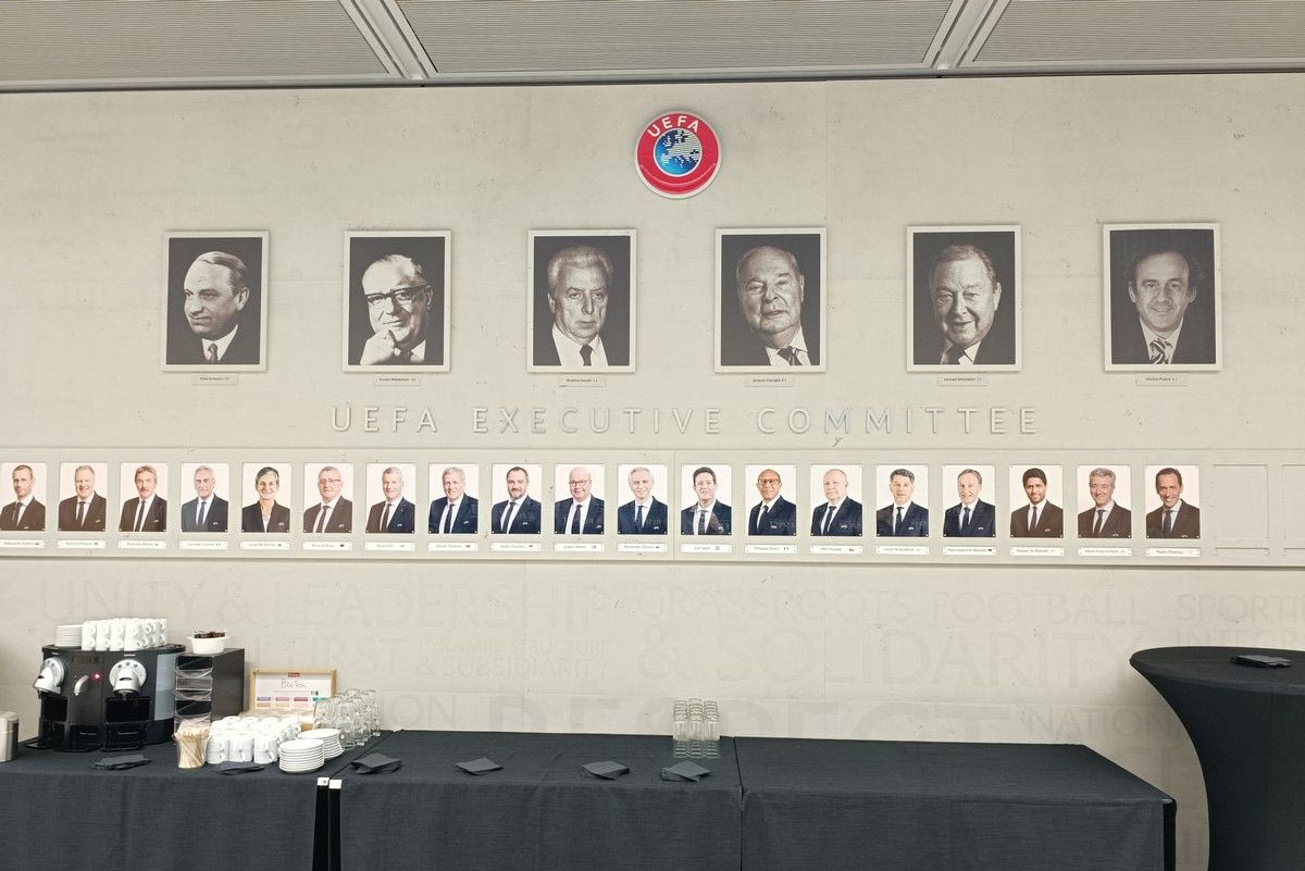 Στο ίδιο σημείο υπάρχει και ένας τοίχος, αφιερωμένους σε όλους τους προέδρους της UEFA με πορτρέτα τους. Από κάτω η Εκτελεστική Επιτροπή της Ευρωπαϊκής Ποδοσφαιρικής Ομοσπονδίας.