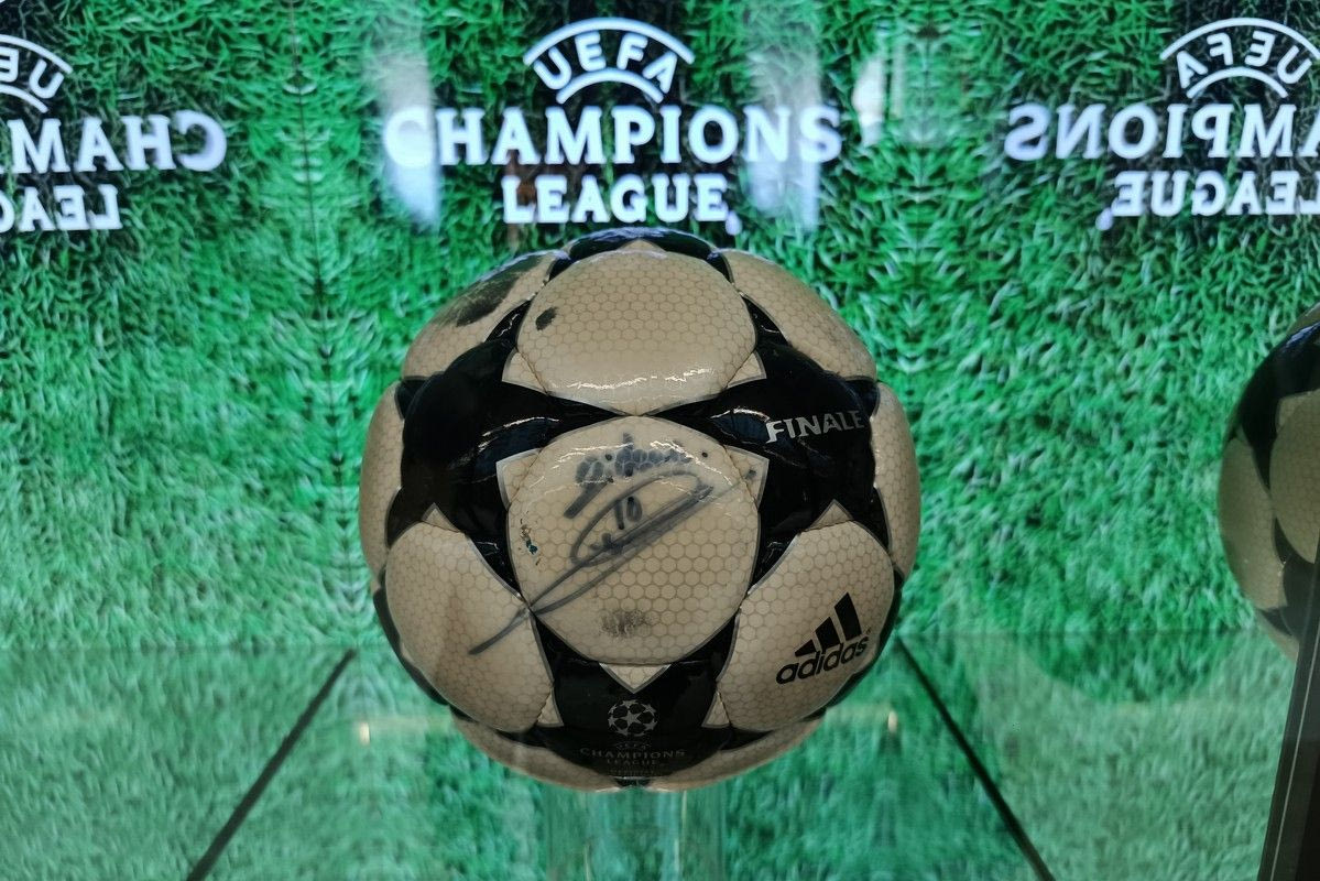 Στο βάθος του διαδρόμου, υπάρχει ένα κειμήλιο στο οποίο το μάτι πέφτει κατευθείαν. Η μπάλα από τον τελικό του Champions League στο Χάμντεν Παρκ το 2002.