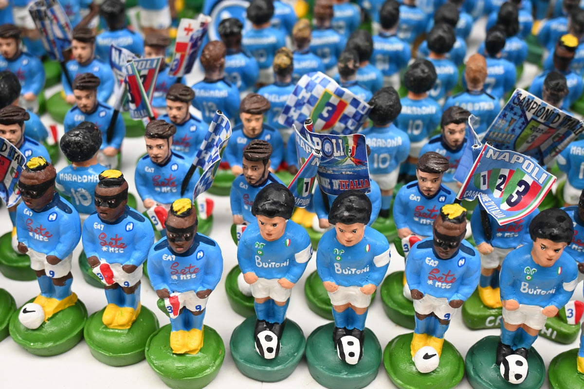 Οι Ναπολιτάνοι έχουν, όμως, τον δικό τους τρόπο για να δείχνουν την αγάπη τους. Είναι άλλωστε, ο μοναδικός ποδοσφαιρικός λαός που μπορεί να φτιάξει μια πόλη να μοιάζει με ένα απέραντο ποδοσφαιρικό λούνα παρκ. Σε πολλά από τα στενά της Ισπανικής Συνοικίας και του Centro Storico, υπάρχουν κρεμασμένες οι φωτογραφίες με τη βασική ενδεκάδα της φετινής Νάπολη. Πρώτα του τερματοφύλακα, μετά των αμυντικών, ύστερα των μέσων και στο τέλος των επιθετικών.