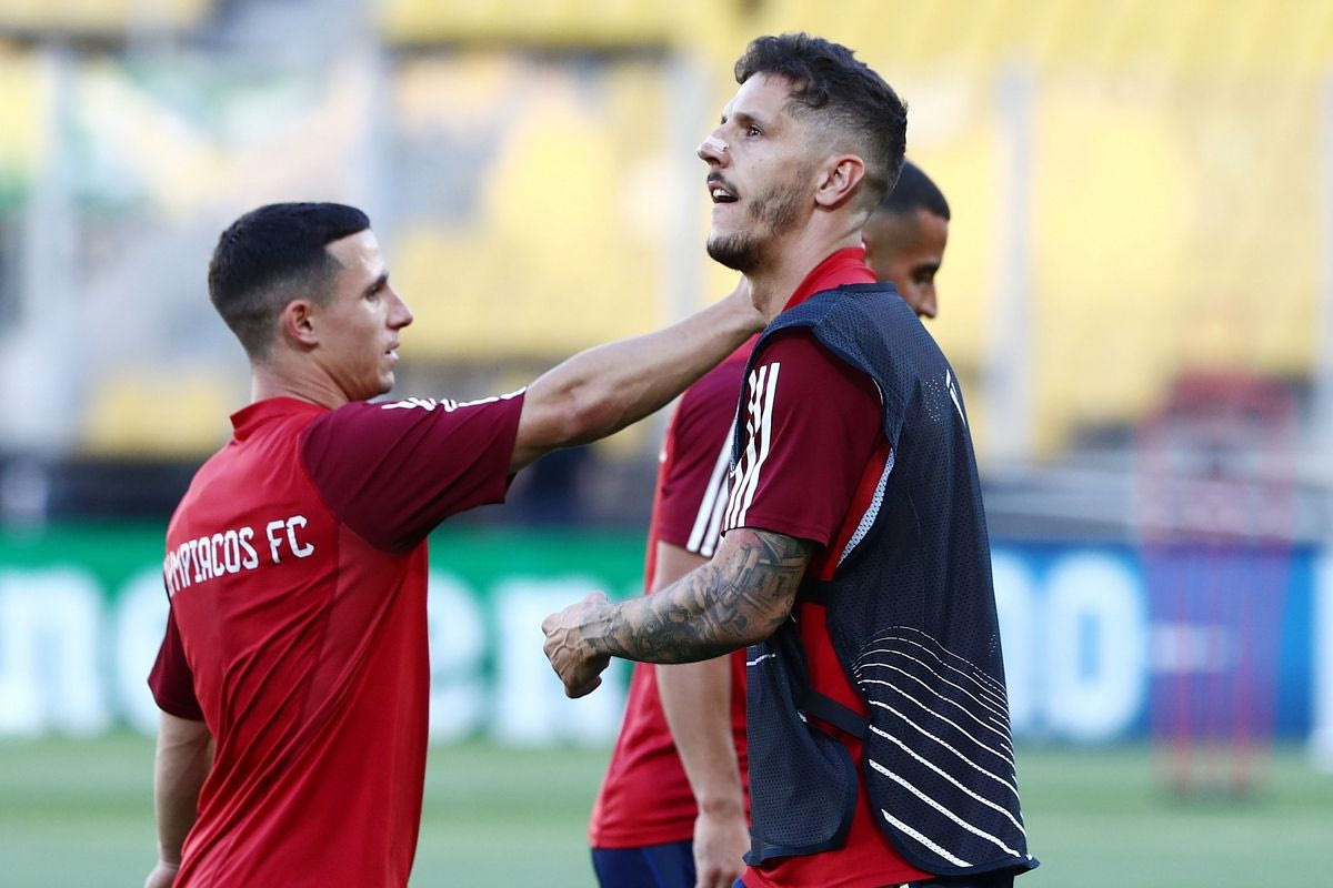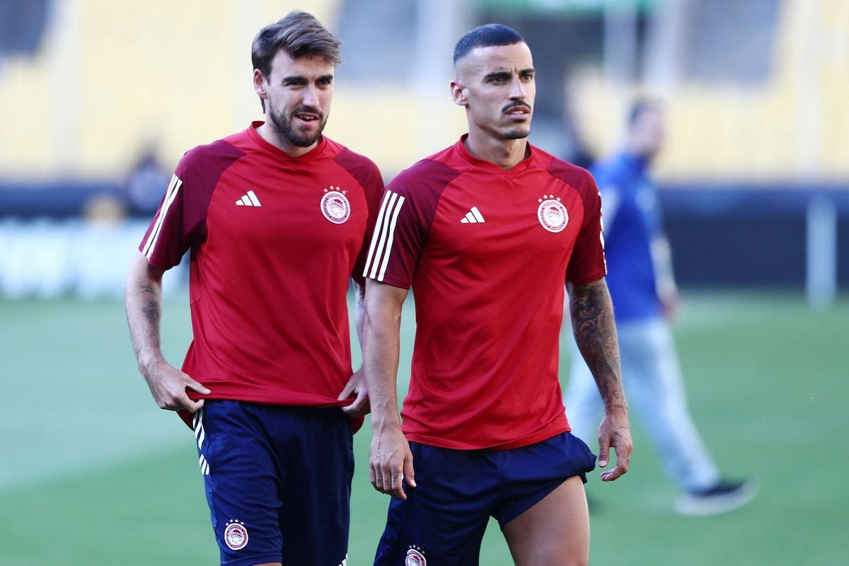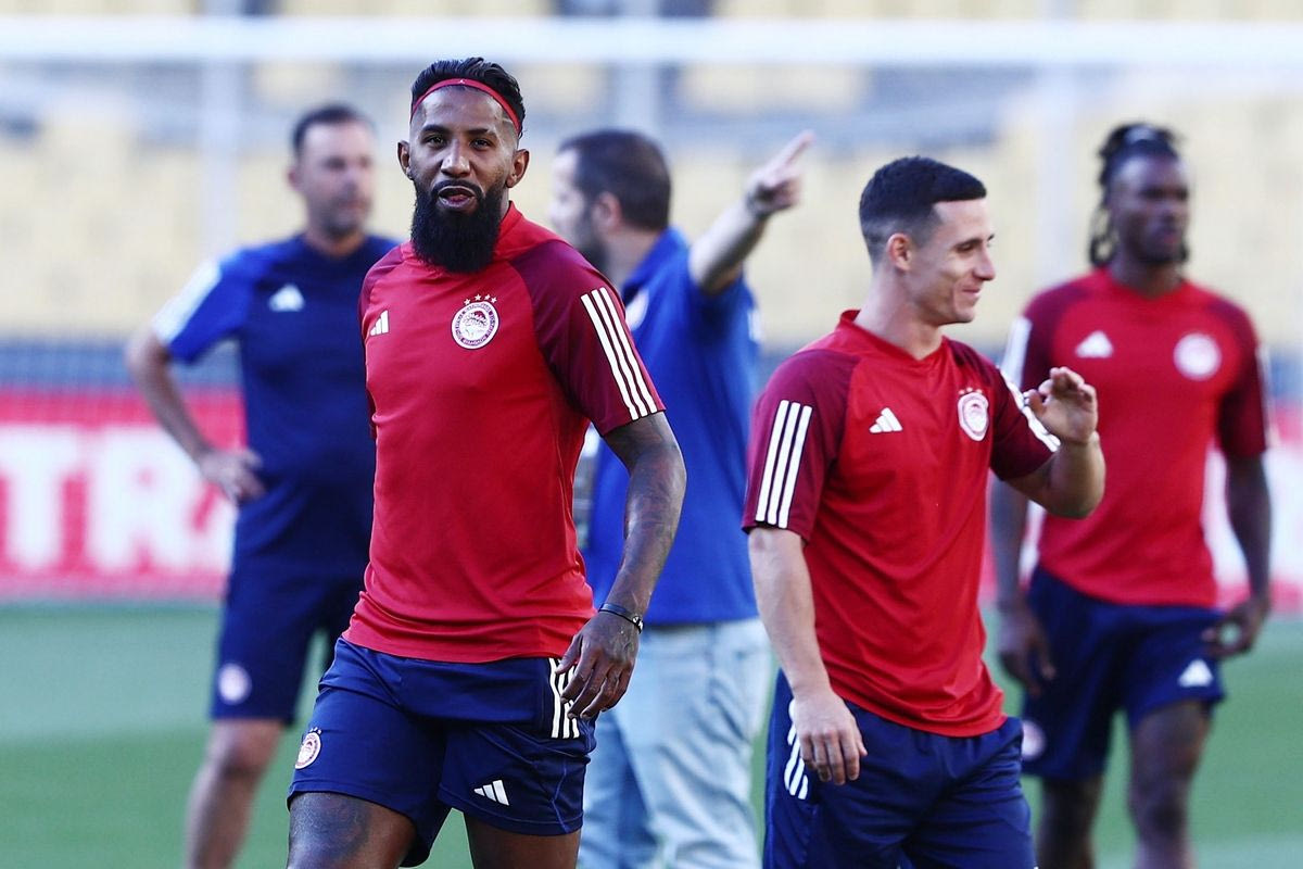 Οι Τσικίνιο και Αντρέ Όρτα στην προπόνηση του Ολυμπιακού στην OPAP Arena ενόψει του τελικού του Conference League