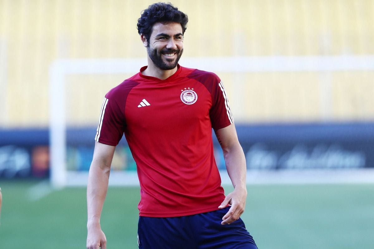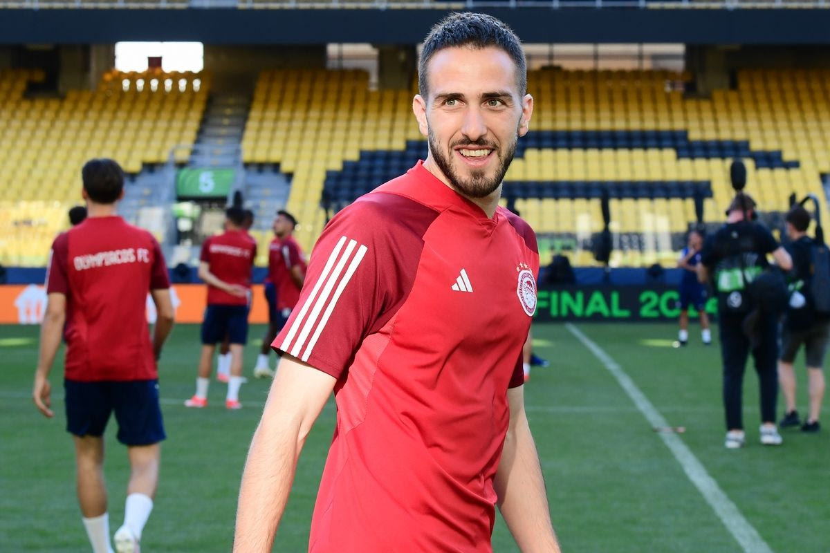 Ο Κώστας Φορτούνης στην προπόνηση του Ολυμπιακού στην OPAP Arena ενόψει του τελικού του Conference League