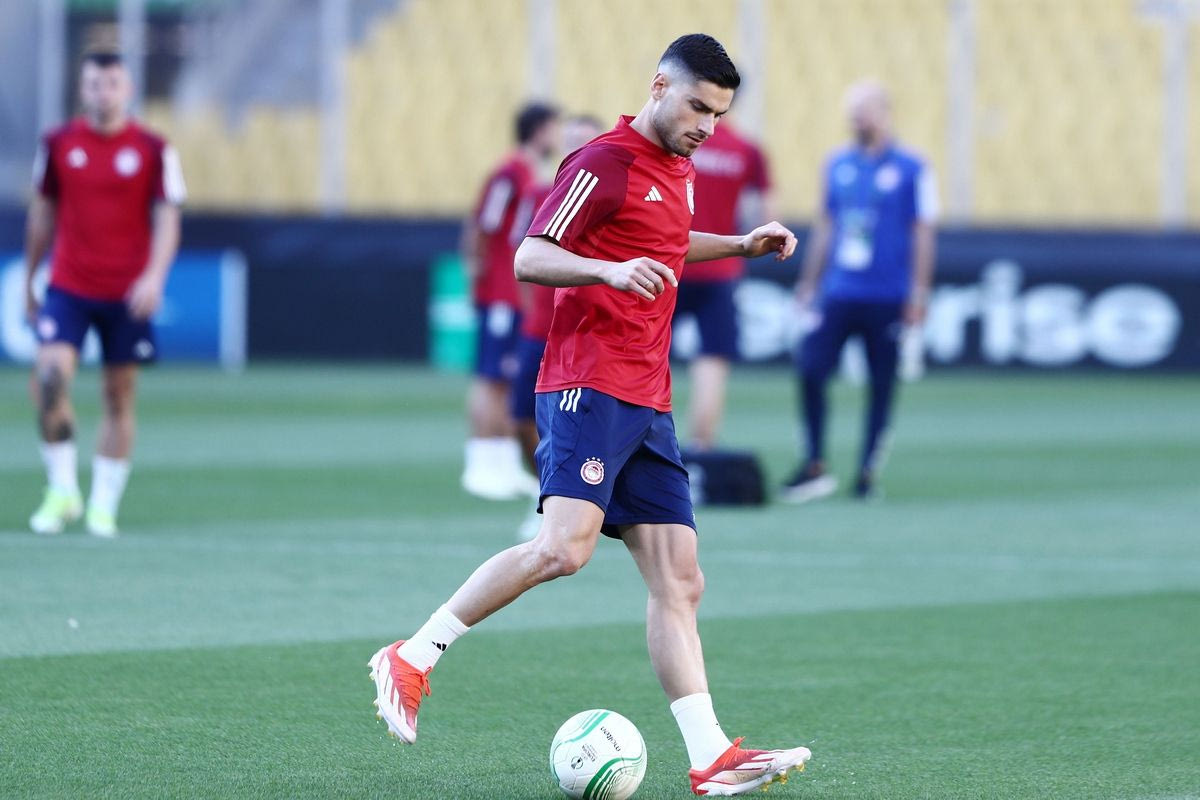 Ο Στέφαν Γιόβετιτς στην προπόνηση του Ολυμπιακού στην OPAP Arena ενόψει του τελικού του Conference League