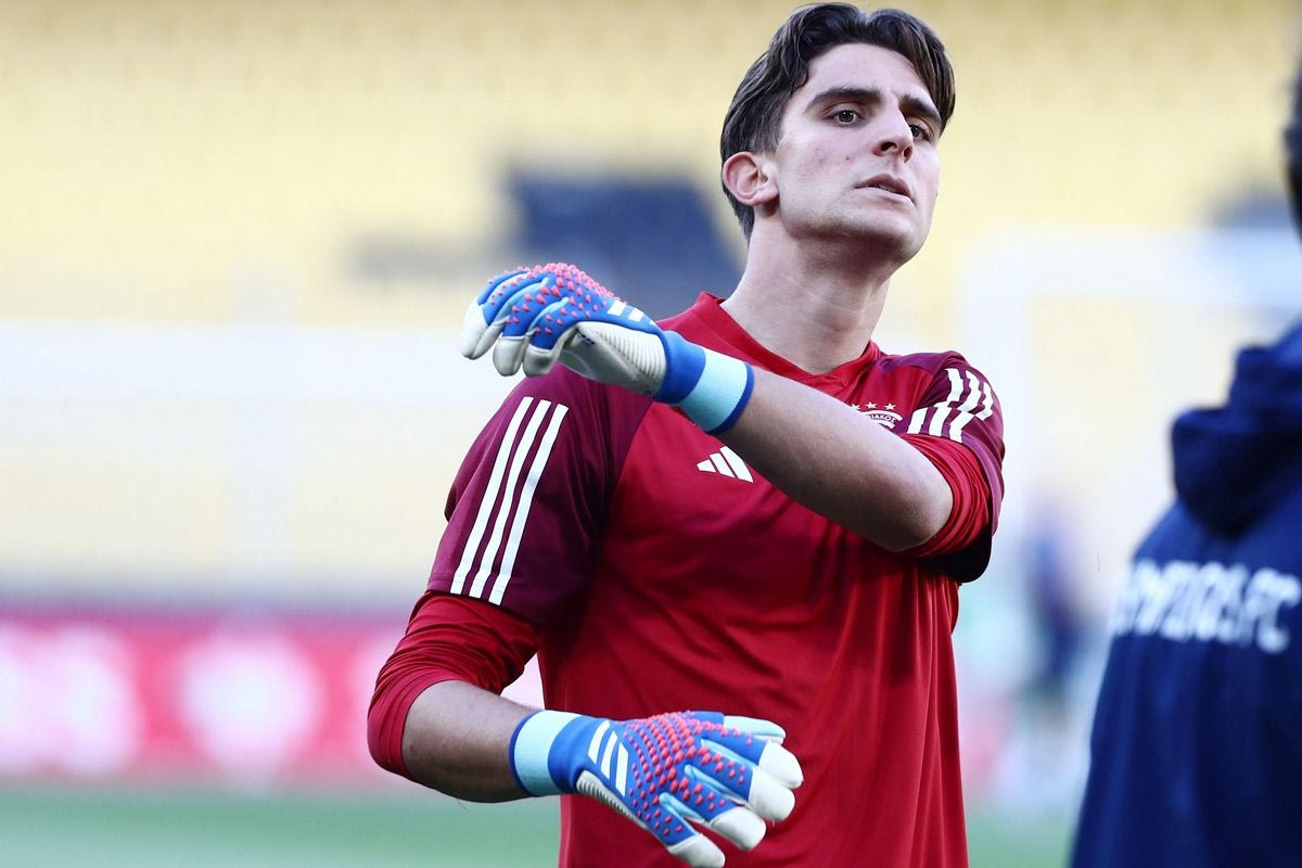 Ο Κωνσταντής Τζολάκης στην προπόνηση του Ολυμπιακού στην OPAP Arena ενόψει του τελικού του Conference League