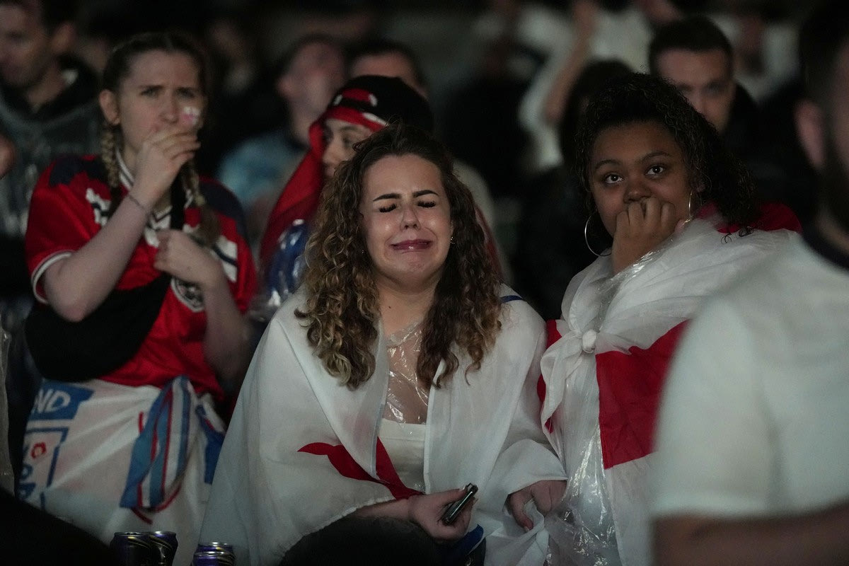 Φίλαθλοι της Αγγλίας σε στιγμιότυπο στο περιθώριο του τελικού με την Ιταλία για το Euro 2020 στην Τραφάλγκαρ Σκουέρ, Λονδίνο | Κυριακή 11 Ιουλίου 2021 © 2021 Matt Dunham/Associated Press