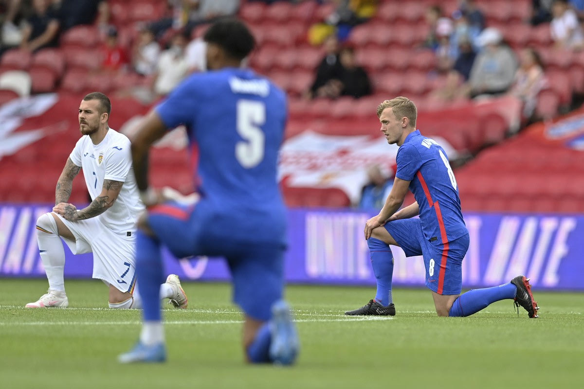 Πολύ απλά γιατί η προσοχή όλων στράφηκε κατά βάση στην απόφαση των παικτών του Γκάρεθ Σάουθγκεϊτ να γονατίσουν πριν από την έναρξη της αναμέτρησης. Μία κίνηση που ούτε πρώτη φορά έγινε, ούτε τελευταία. Τα “λιοντάρια” έχουν πάρει μια ξεκάθαρη απόφαση και δεν πρόκειται να κάνουν πίσω στο Euro 2020, κι ας υπάρχουν μερικές (λίγες) φωνές που αντιτίθενται στο μήνυμα που θέλουν να περάσουν.
